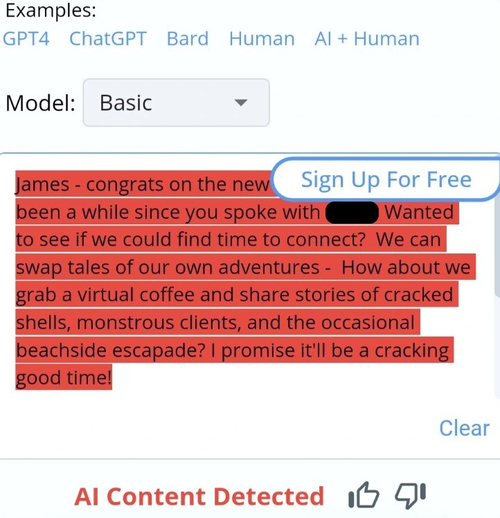 People who say they read a post I made. Or pulled some other snippet from my LinkedIn profile. But their phrasing is awkward and robotic.